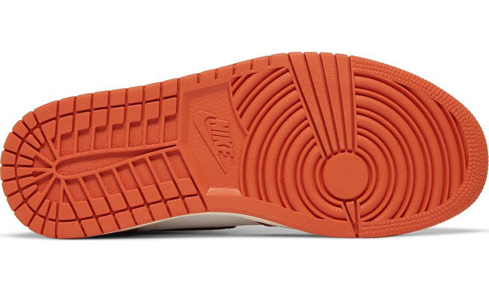 The women’s Air Jordan 1 High OG ‘Starfish’ brings back the signature hue unfailingly tied to the ‘Shattered Backboard’ colorway from 2015. The all-leather upper features a white base, contrasting orange overlays, and a high-cut collar in chocolate brown. A woven Nike Air tag embellishes a lightly padded nylon tongue in a vintage off-white finish. The aged aesthetic is repeated on the rubber midsole, fitted with an encapsulated Air-sole unit in the heel and supported underfoot by an orange rubber outsole.