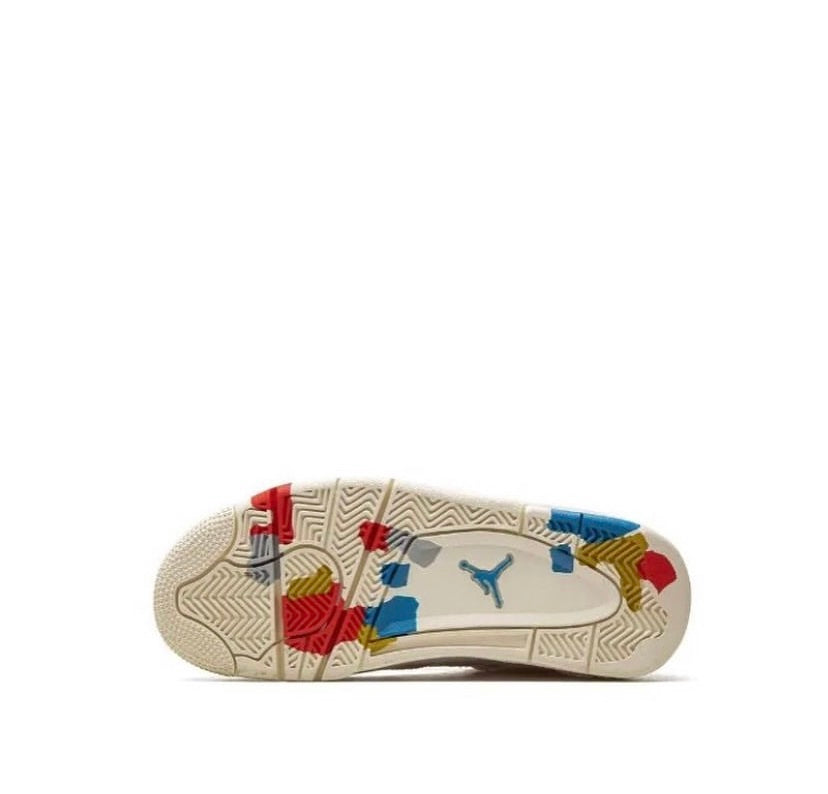 The Air Jordan 4 now appears dressed in light beige canvas- except on the plastic lace tips at either end of the instep. This sneaker has a minimal design, highlighted by a signature Jumpman logo on the tongue and at the heel. The entire upper and midsole come in a ‘Sail’ tone, a classic brand shade that adds a