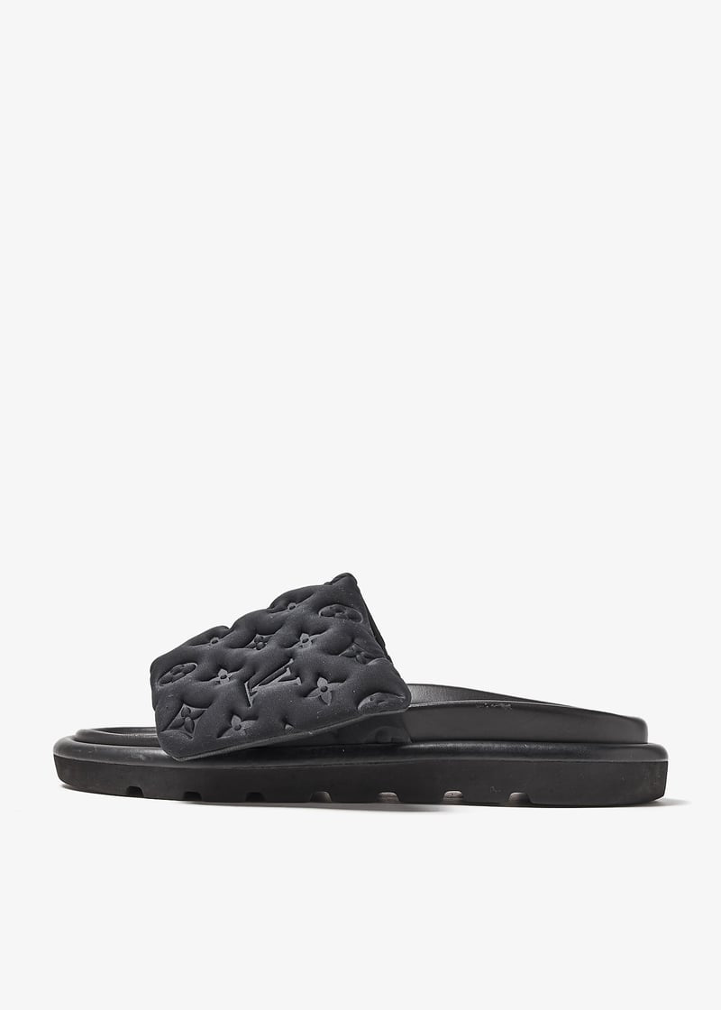 Louis Vuitton Black Monogram Nylon Velcro Flats Slides