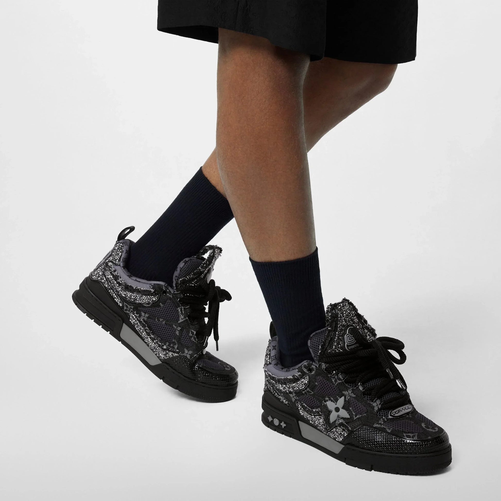 Step into refined street luxury with the Black Edition of the Louis Vuitton Skate Crystal. Featuring an all-black design with hand-applied Swarovski crystals, this limited sneaker delivers bold elegance and premium craftsmanship in every step.